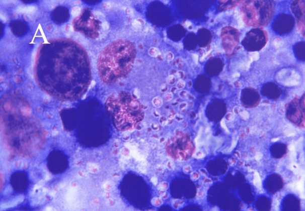 图1 组织胞浆菌的Giemsa染色图(A)[3]和Wright染色图(B)[4]