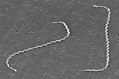 问号钩端螺旋体呈细长、螺旋状,长约6-20 μm,直径约0.1 μm,具有内鞭毛(endoflagella),运动活泼,呈旋转或蛇形前进。革兰氏染色阴性,但不易着色,常用镀银染色(如Fontana染色)或暗视野显微镜观察(图1)[1]。