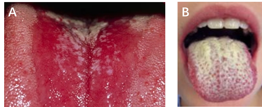 图3 口腔念珠菌病(鹅口疮)的临床表现