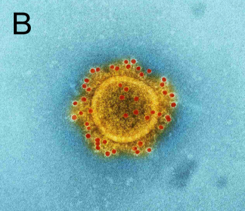 A:SARS-CoV-2显微照片[4],B:MERS-CoV透射电子显微镜照片[5]